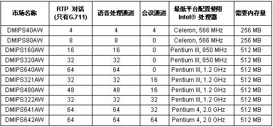 市場(chǎng)名稱 RTP 對(duì)話 (只有G.711) 語(yǔ)音處理通道 會(huì)議資源