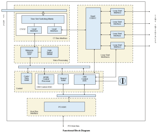 信令數(shù)據(jù)(摘機/掛機、振鈴、呼叫方ID等等)傳送到板內(nèi)控制處理器,并且通過雙端口共享RAM和主機PCI總線發(fā)送到應(yīng)用程序。