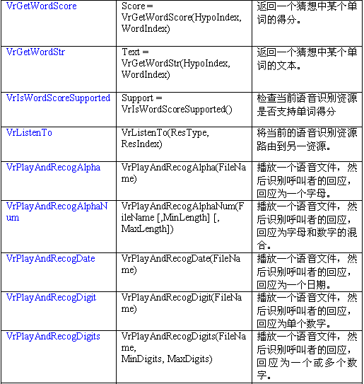 語音識別資源把呼叫者的語音轉(zhuǎn)變?yōu)槲谋咀址。一個VR資源可以對一個語音流數(shù)據(jù)(來自一中繼或會議資源)進行識別。