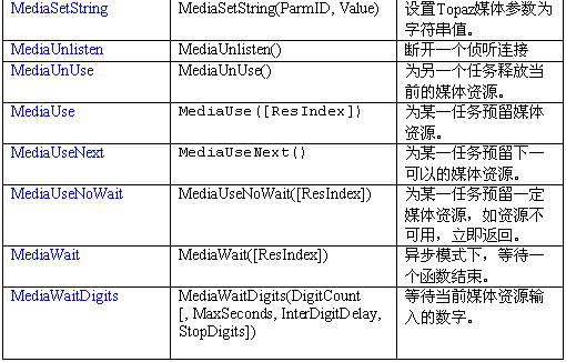 控制媒體資源的函數(shù)如下: