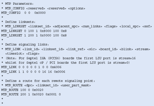 注意,這些不包括任何設置或定義信令板卡的命令,應該象定義標準的單系統(tǒng)一樣定義。MTP_ROUTE <up_enable>參數(shù)為ISUP設置,在上例中用戶部分SI=5。