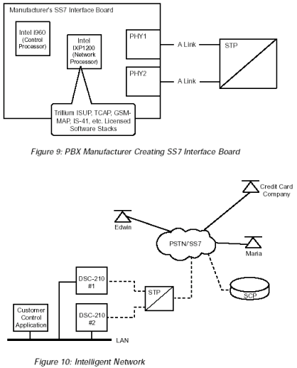 SS7產品可以被用來建立SS7網絡元素(NEs)和高級智能網絡(AIN)平臺,比如: