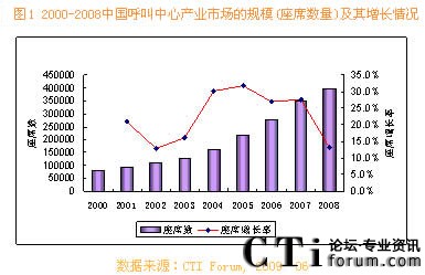 圖 1 2000-2008中國(guó)呼叫中心產(chǎn)業(yè)市場(chǎng)的規(guī)模